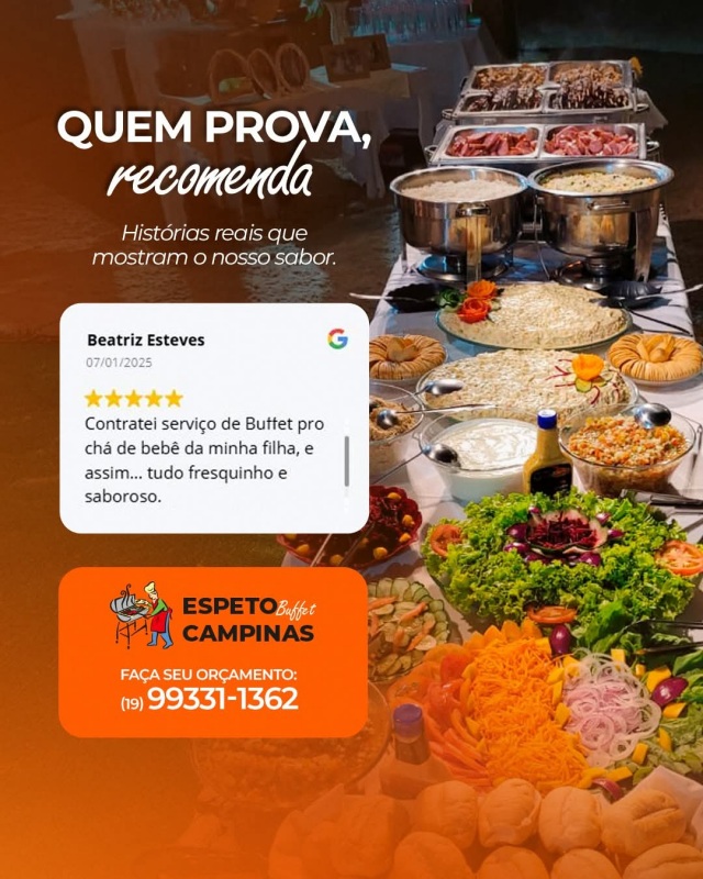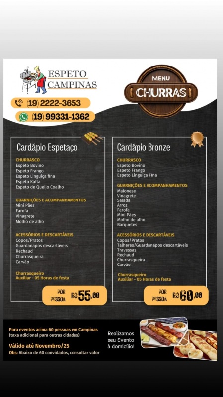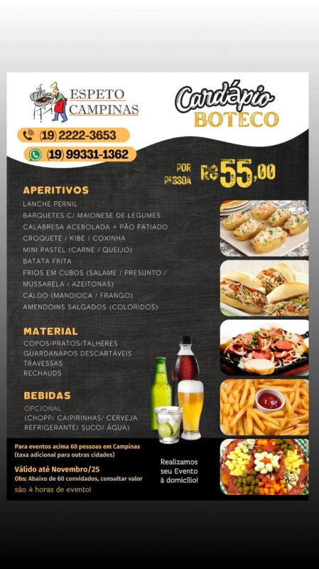 19993311362(19)99331-1362Espeto Campinas Buffet (Carnes Nobres/Espetinhos)http://www.espetocampinas.com.br