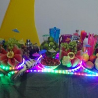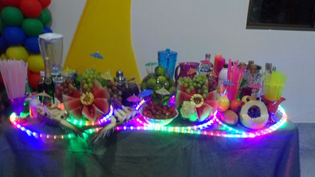 decoração da mesa com esculturas em frutas...
